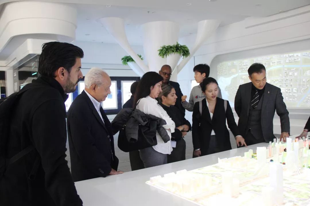 中联部五局一秘齐萌,中联部五局实习秘书兼英语翻译孟宏宇,中联部五局干部兼西班牙语翻译孙童,天津市人民政府外事办公室美大处副处长张静,天津市人民政府外事办公室美大处干部郭栋陪同参观。
